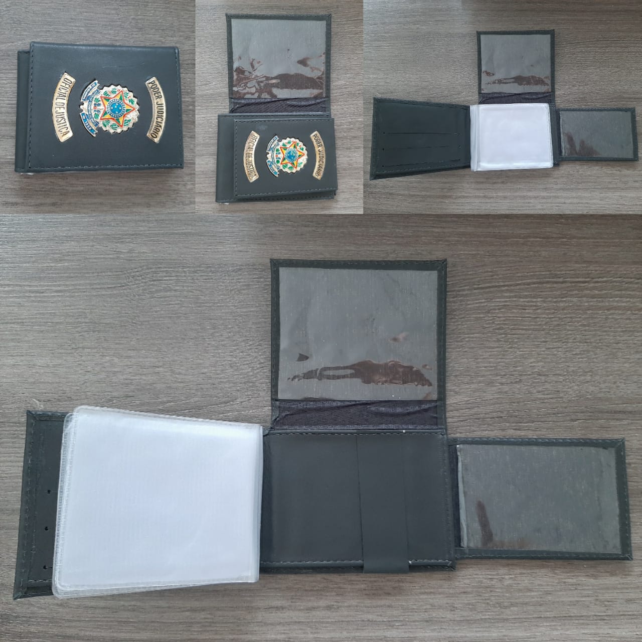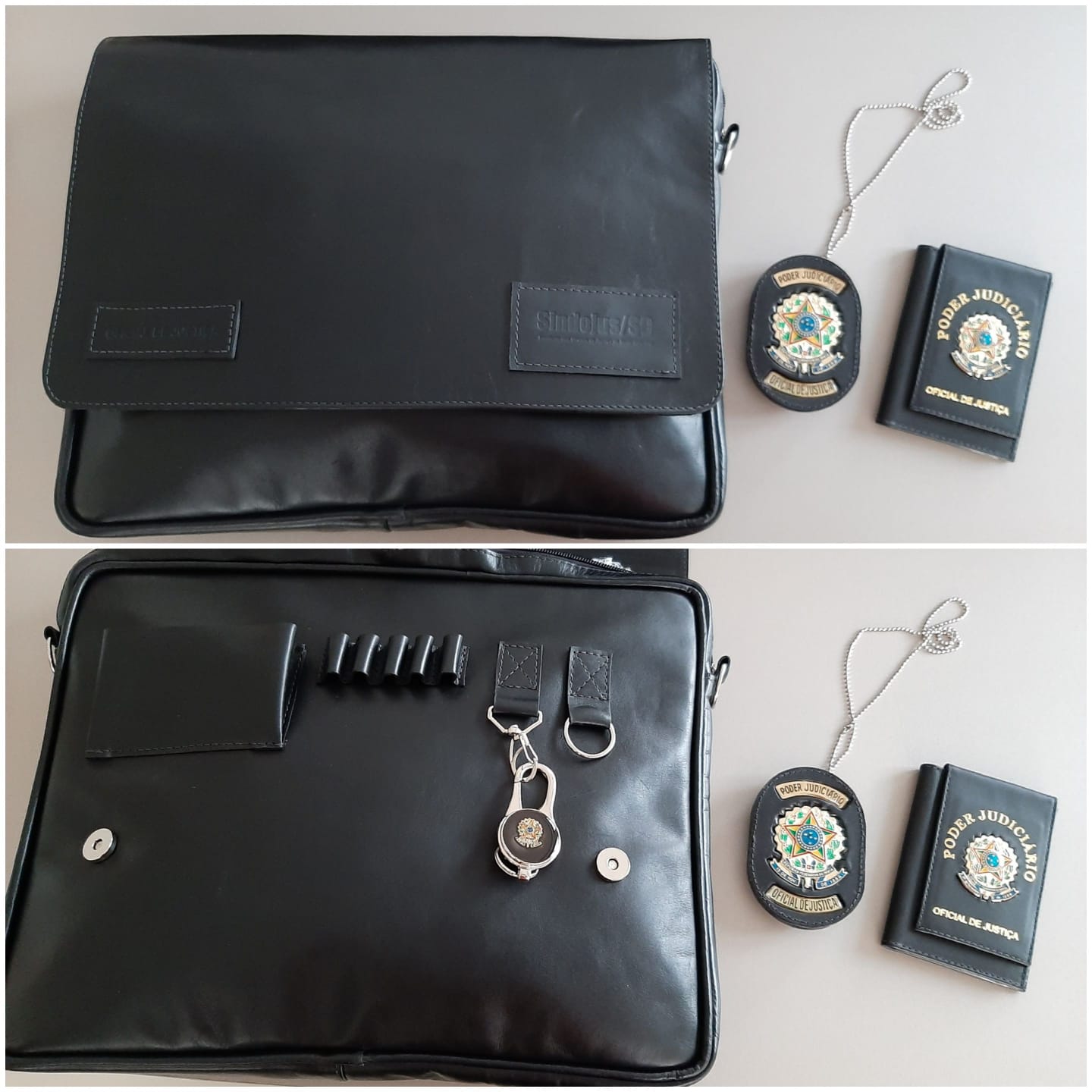 Pasta em couro com alças ( na compra, ganhe de brinde um (1) mosquetão, uma (1) carteira porta documentos e um (1) distintivo.