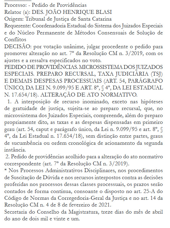 O 1º secretário do Sindojus-SC, Claudio Antônio de Paiva Simon, explica que agora, entende-se por PREPARO todas as despesas do 1º grau, mais a taxa recursal. Assim, segundo ele, quem for recorrer à Turma Recursal deverá demonstrar o preparo com tudo o que foi gasto no 1º grau, inclusive os valores de diligência do OJ/OJA.