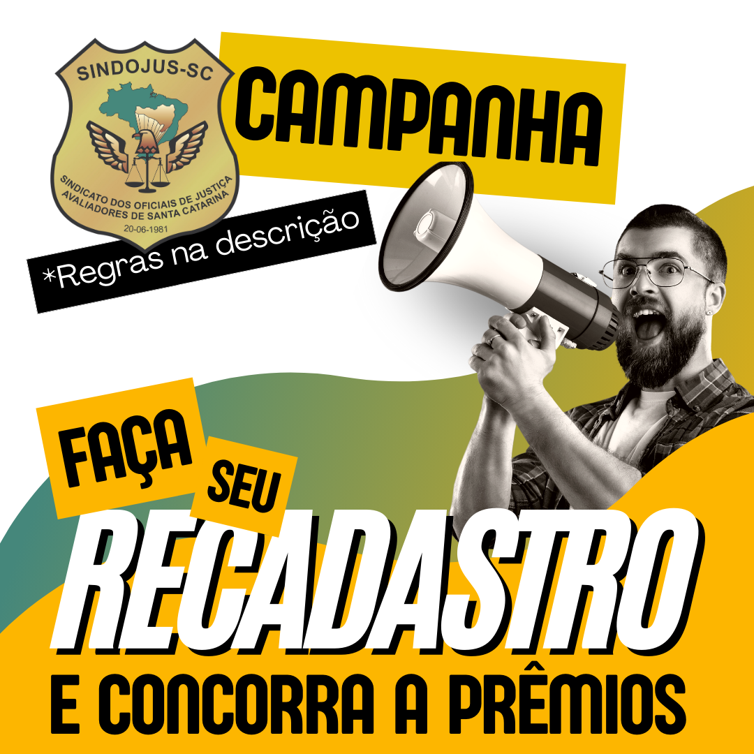 Com foco em todos os filiados ativos e aposentados, a CAMPANHA de RECADASTRAMENTO é importante para você e para o Sindicato, pois apenas com os dados cadastrais atualizados o SINDOJUS-SC pode assegurar que informações importantes sejam repassadas a todos.