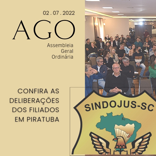 Assuntos Gerais - Em Assuntos Gerais, foi levantada a sugestão de um filiado, que propôs uma alteração estatutária do Sindojus-SC, para que as Assembleias Ordinárias da categoria possam, no futuro, ser realizadas virtualmente, ou em formato híbrido. Após várias explanações, a quase totalidade da plenária decidiu em votação que se permaneça como está o estatuto, e que apenas as Assembleias Extraordinárias possam ser realizadas de forma alternativa, totalmente on-line ou mistas, conforme o interesse e necessidade dos filiados.