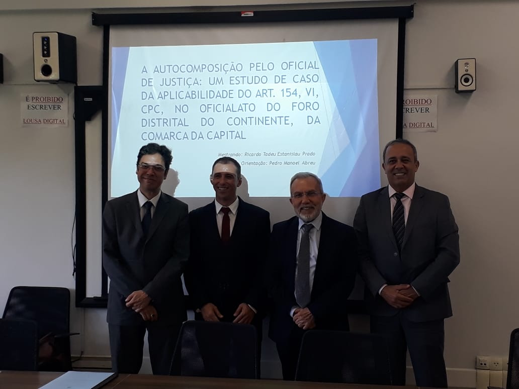 "A AUTOCOMPOSIÇÃO PELO OFICIAL DE JUSTIÇA: UM ESTUDO DE CASO DA APLICABILIDADE DO ART. 154, VI, CPC, NO OFICIALATO DO FORO DISTRITAL DO CONTINENTE, DA COMARCA DA CAPITAL". Este foi o título da dissertação de mestrado defendida pelo conselheiro do Sindojus-SC, o oficial de justiça Ricardo Tadeu Estanislau Prado, na manhã de hoje, dia 17, nas dependências do Centro de Ciências Jurídicas da Universidade Federal de Santa Catarina ? UFSC.