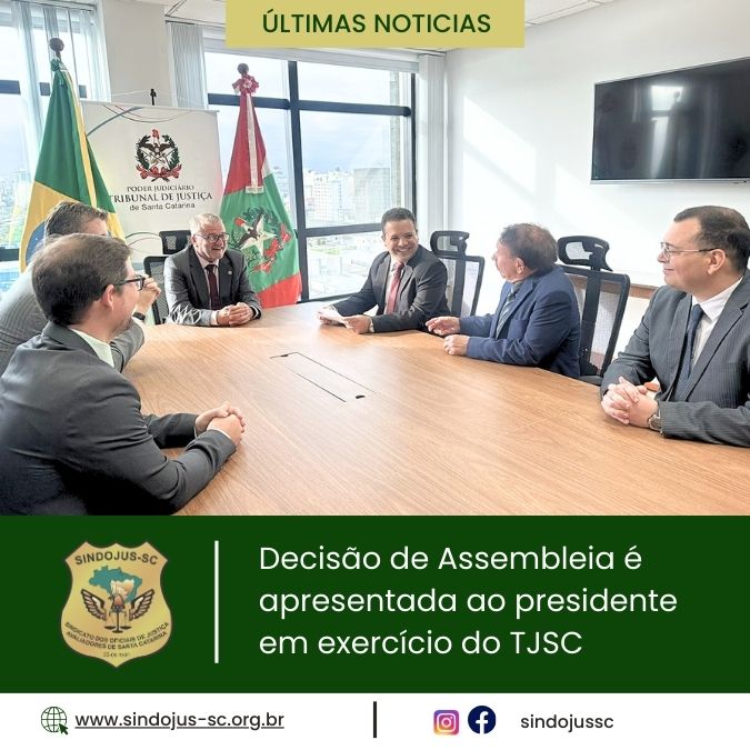 Na ocasião, os Diretores também reiteraram o pedido de aumento do percentual da Gratificação de Diligência, uma solicitação que, inclusive, já está no Núcleo Financeiro do TJSC há um ano e possui baixo impacto financeiro. As Diretorias agora irão aguardar o retorno do TJSC sobre os pedidos, já entrando em contato com os demais membros do Conselho da Magistratura para tratar do plantão Regionalizado. No mesmo dia, ainda foram feitas reunião no Núcleo Administrativo e o NIS para tratar de temas de interesse da categoria.