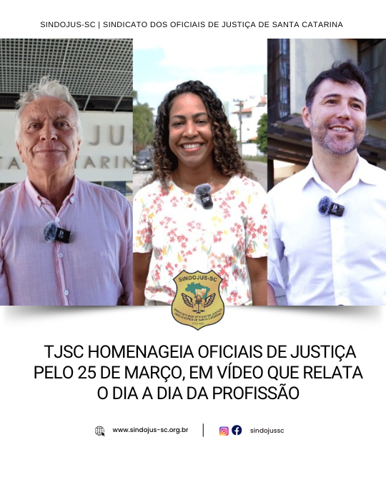 O dia 25 de março é dedicado ao oficial de Justiça, uma data que ressalta a importância desses profissionais na entrega das comunicações dos juízes e desembargadores diretamente aos cidadãos. Para marcar a ocasião, o Núcleo de Comunicação Institucional (NCI) preparou um vídeo especial, no qual oficiais de justiça do Poder Judiciário Catarinense (PJSC) narram parte do dia a dia da profissão. Um trabalho que vai muito além do cumprimento de mandados. Em meio a uma rotina imprevisível, esses profissionais enfrentam desafios que exigem inteligência emocional, habilidade de mediação e preparo técnico para atuar em diferentes contextos. Seja promovendo acordos, garantindo o cumprimento das determinações judiciais ou lidando com situações delicadas, os oficiais de Justiça são essenciais para o funcionamento do Judiciário e para aproximar a Justiça da população.
