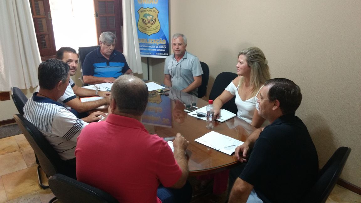 A Diretoria do Sindojus-SC esteve reunida na manhã desta sexta-feira, 10, na sede da entidade, em Itajaí. Em pauta: Informes; Resíduo da data base 3,78; PL 014-2016; Assembleias Regionais do Sindojus-SC; Fenojus/ Fesojus; e Assuntos gerais.