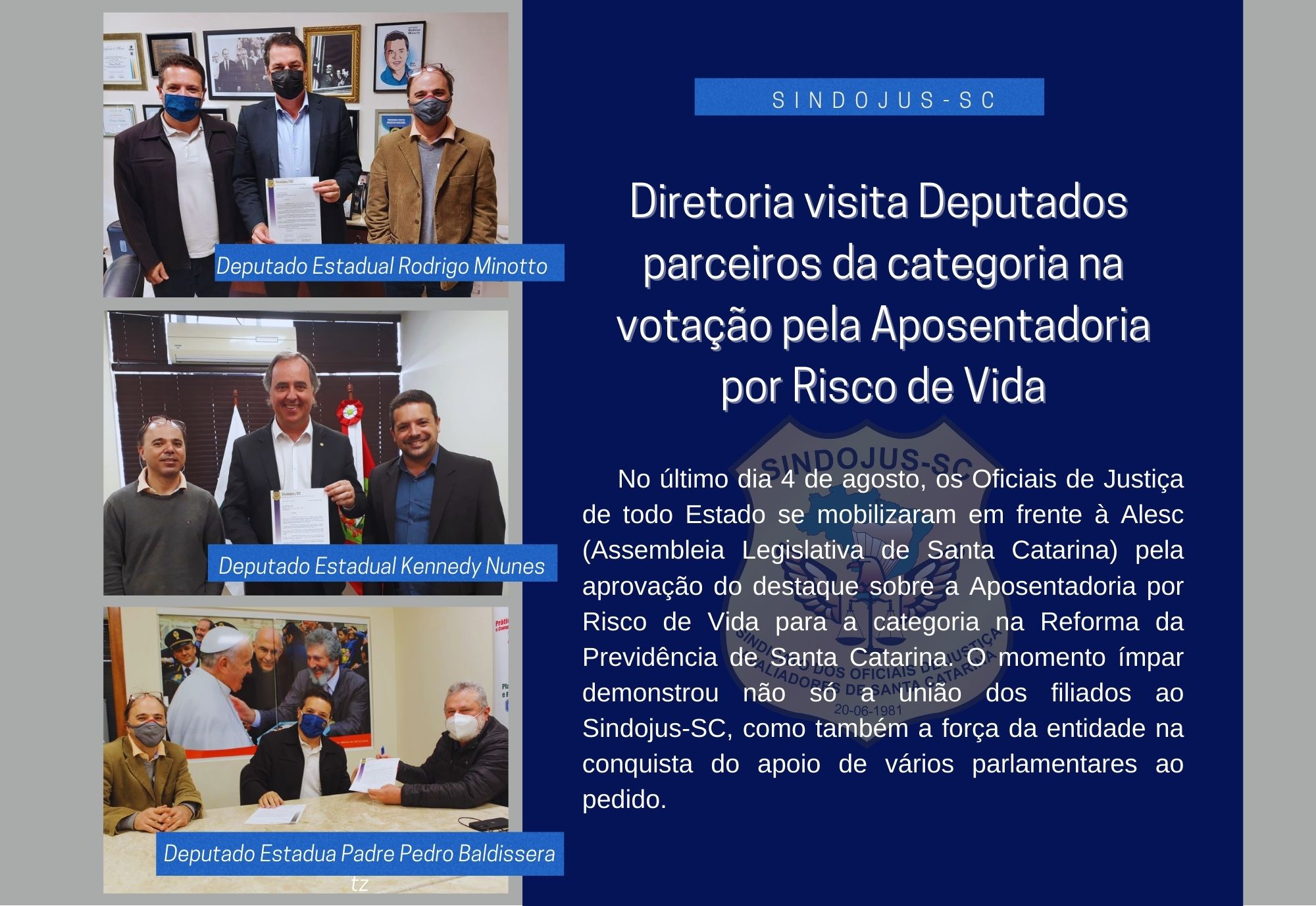 Importante ressaltar que, mesmo tendo sido levada ao debate pela primeira vez dentro da Alesc, a Aposentadoria por Risco de Vida para a categoria alcançou o apoio de 25% dos parlamentares da casa. "Acredito que esta é uma pauta que não se esgotou, ao contrário, trata-se de uma luta nacional, que voltará ao debate, principalmente, após o julgamento da ação do Mato Grosso no STF", reforça o presidente do Sindojus-SC, lembrando que a batalha agora não parte do zero, já que possui o apoio dos parlamentares catarinenses já sensíveis a causa.