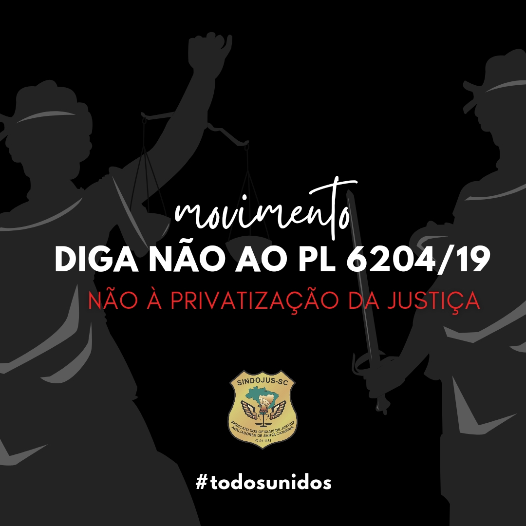 O Sindojus-SC convoca seus filiados para que nesta terça-feira, 28/06, data de votação do Projeto de Lei (PL) 6204/2019 da Desjudicialização da Execução Civil, enviem mensagem aos senadores por Santa Catarina, exigindo o seu NÃO a esta tentativa de privatizar a justiça.