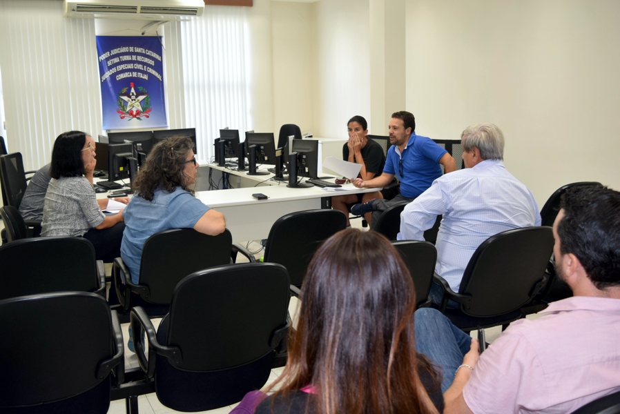 Diretores do Sindojus-SC estiveram em visita na Comarca de Itajaí na última quarta-feira, dia 4, reunidos com os Oficiais de Justiça locais. A visita foi a pedido da categoria, que procura alternativas ao trabalho problemático e extenuante relacionado ao Presídio Regional de Itajaí e ao Completo Penitenciário de Itajaí. Fizeram-se presentes na ocasião o presidente e o secretário geral do Sindojus-SC, Fernando Amorim Coelho e Fábio Ramos Bittencourt, respectivamente.