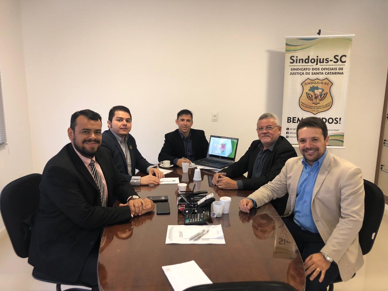 Uma equipe técnica do Sindojus-Ceará (CE), composta por seu presidente Vagner Venâncio, o diretor Jurídico, Carlos Eduardo, e o diretor Financeiro, Francisco Luciano Júnior, está em visita a Santa Catarina, com o intuito de conhecer in locuo o projeto de autoria do Oficial de Justiça Ricardo Prado: "Oficial de Justiça Conciliador". Na manhã de hoje, dia 6 de setembro, a equipe reuniu-se com Prado, que expôs aos presentes um resumo de sua ideia que revela a transição implícita no CPC de 2015, transformando o antigo oficial de justiça em oficial de justiça conciliador, sugerindo medidas de otimização do trabalho.