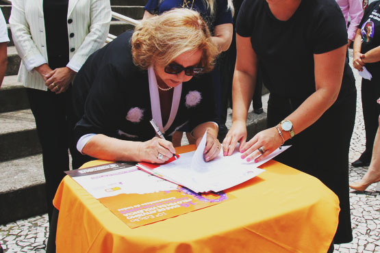 A desembargadora Salete Sommariva, coordenadora estadual da Mulher em Situação de Violência Doméstica e Familiar (Cevid) do Tribunal de Justiça, participou nesta semana da solenidade de abertura da campanha 16+5 Dias de Ativismo, cujo objetivo é promover o debate e denunciar as várias formas de violência contra as mulheres no mundo. Na ocasião, em evento realizado no largo da Catedral, centro da Capital, a desembargadora assinou o Pacto Estadual de Enfrentamento de Violência contra as Mulheres.