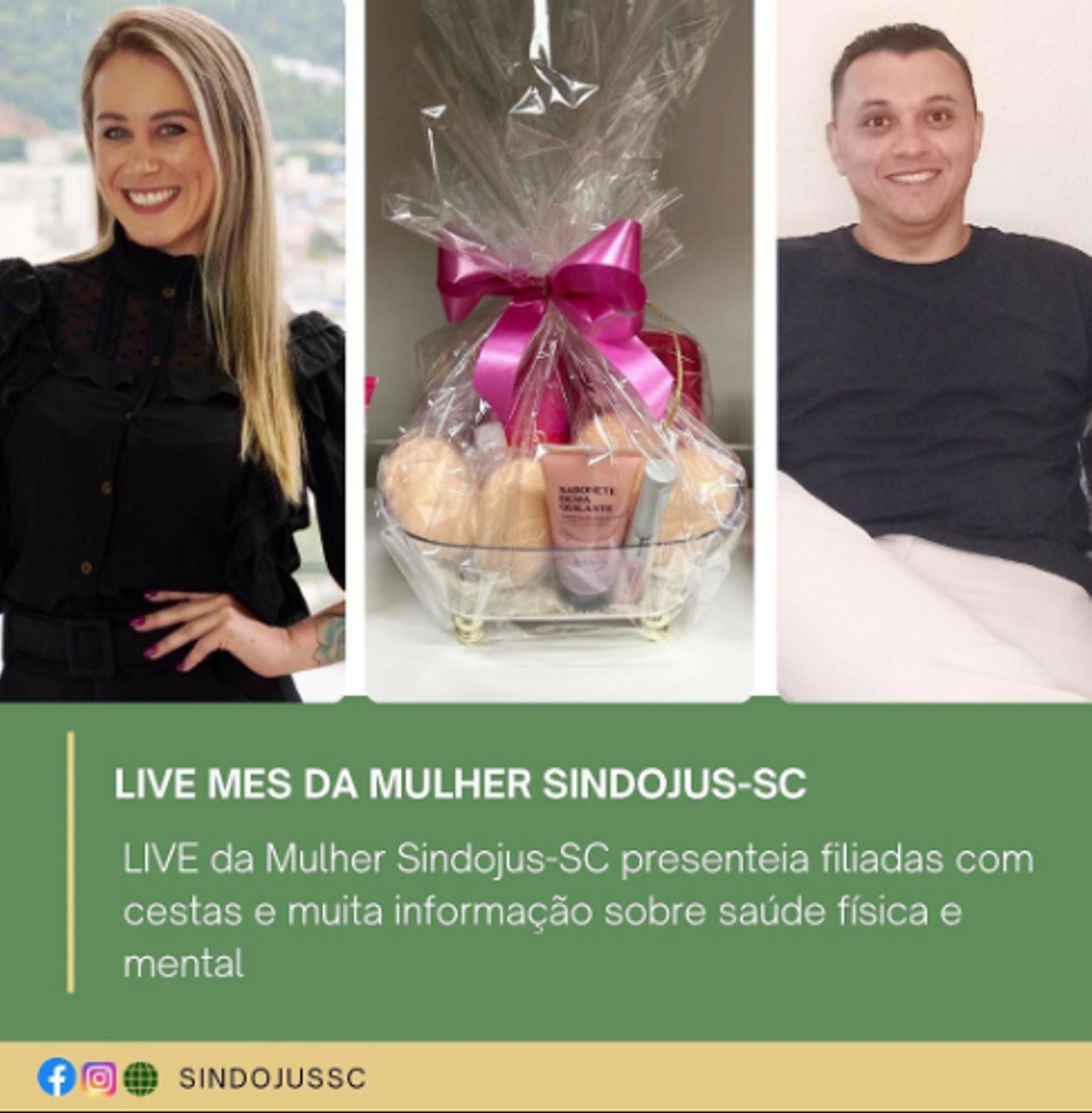 Na LIVE MÊS DA MULHER SINDOJUS-SC, realizada na noite da última quinta-feira, 16/03, na conta do sindicato no Instagram, cinco cestas de produtos de beleza foram sorteadas entre as filiadas. Em uma brincadeira divertida de adivinhar números, cinco foram as meninas sortudas da noite: Sandra Brizola, Denise Reche, Beatriz Rodrigues, Juana Maria Silveira e Jocilene Spessatto.
