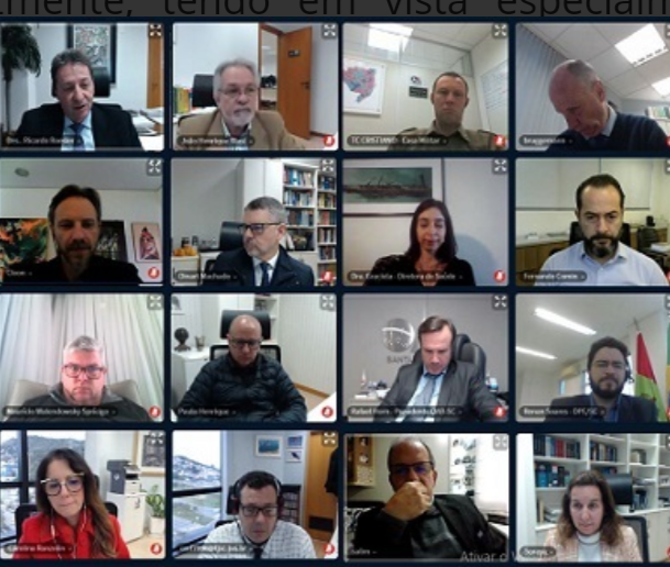 O planejamento adotado pelo Poder Judiciário de Santa Catarina (PJSC) para restabelecer a retomada gradual das atividades presenciais foi cumprimentado por todos os representantes das instituições que integram o Comitê Interinstitucional de Acompanhamento da Covid-19. Em reunião realizada por videoconferência nesta quinta-feira (24/6), o presidente do PJSC, desembargador Ricardo Roesler, compartilhou detalhes da resolução conjunta que dispõe sobre o restabelecimento dos serviços presenciais a partir do próximo dia 1º de julho.