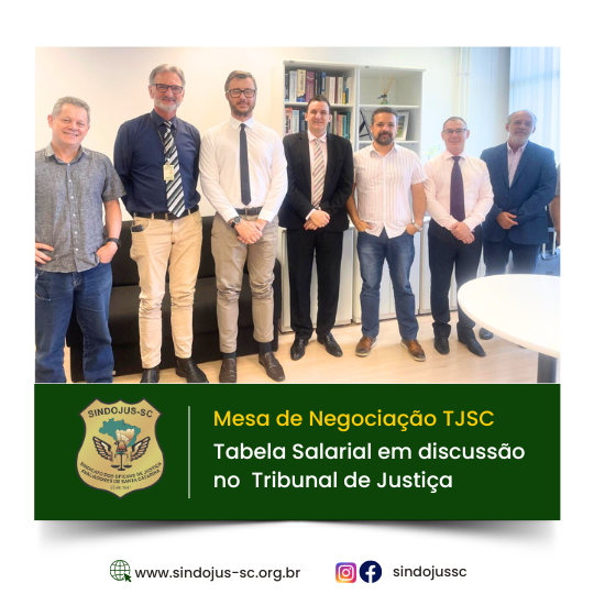 No dia 11 de novembro, uma nova mesa de negociação foi realizada entre representantes do Tribunal de Justiça de Santa Catarina -TJSC, associações e o Sindicato dos Oficiais de Justiça de Santa Catarina (Sindojus-SC) para discutir importantes ajustes na proposta da nova tabela salarial para os servidores do Judiciário estadual.
