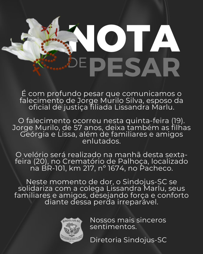 Neste momento de dor, o Sindojus-SC se solidariza com a colega Lissandra Marlu, seus familiares e amigos, desejando força e conforto diante dessa perda irreparável.
