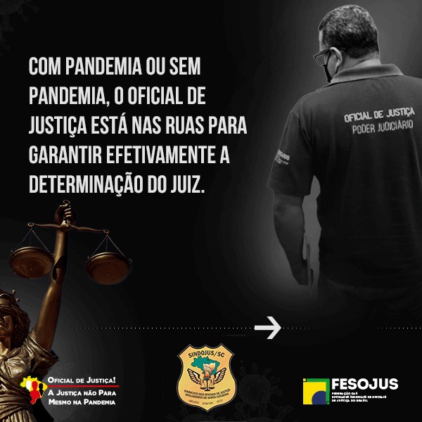 No entanto, uma categoria continua nas ruas para materializar as ordens judiciais urgentes: os Oficiais de Justiça! Eles são mais de 36 mil em todo o Brasil, destes, cerca de 700 são de Santa Catarina. A Fesojus – Federação das Entidades Sindicais dos Oficiais de Justiça do Brasil, confirma que mesmo com parte dos tribunais criando obstáculos para o fornecimento dos equipamentos de proteção à Covid-19, salvo raras exceções, os Oficiais de Justiça continuam trabalhando e enfrentando a Pandemia. Consequência disto, conforme levantamento feito pelo site Infojus (infojus.com.br), até o momento, 11 Oficiais de Justiça já perderam suas vidas para o vírus; os doentes ainda estão sendo contabilizados.