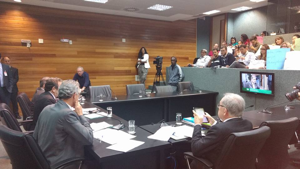 Diretores do Sindojus-SC acompanharam na manhã desta terça-feira, 26, a reunião da Comissão de Trabalho, Administração e Serviço Público da Alesc, esperando o desenrolar do PLC 014.2/2016. O projeto estaria em pauta, mas foi retirado a pedido do relator, deputado Dirceu Dresch, que se comprometeu em discutir o tema na próxima semana. Segundo ele, a emenda do deputado Valduga juntada ao projeto ainda precisa ser avaliada e discutida com o próprio Valduga que, infelizmente, não pode estar presente na reunião desta semana. Na emenda apresentada pelo deputado Valduga consta a validação do pedido de alteração ao projeto feito pelo Sindojus-SC.