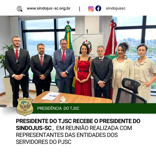 Para o presidente do Sindojus-SC, Fernando Amorim Coelho, representante da Diretoria do Sindicato na ocasião, a reunião demonstra a boa vontade da Presidência para com as entidades, sem distinção de categoria. Além disso, reflete a preocupação da casa em agilizar a resolução das pautas, visto que já foram indicados os representantes do TJSC para a mesa de negociações, que serão tratadas de forma sistematizada. ¨Estamos confiantes numa gestão participativa¨, acredita Amorim. Como pauta especifica da categoria dos Oficiais de Justiça, ele trouxe ao presidente do TJSC o requerimento de readequação do percentual da Gratificação de Diligência, que já passui SEI em trâmite.