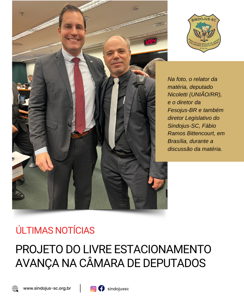 O Sindojus-SC segue acompanhando de perto a tramitação do PL 3554/2023, em conjunto com as entidades representativas da categoria em âmbito nacional, e reafirma seu compromisso permanente com a luta pela valorização, segurança e fortalecimento dos Oficiais e Oficialas de Justiça.
