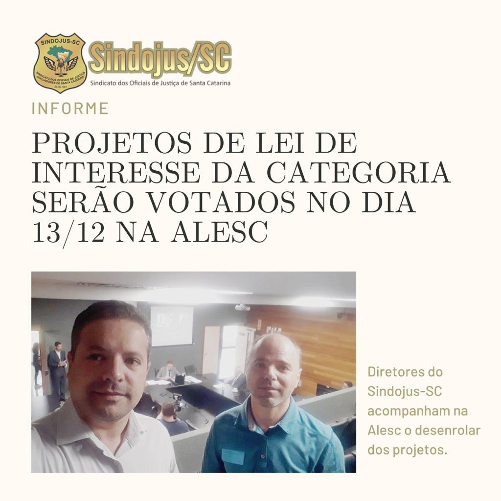 Assim, Diretores tem o indicativo que os dois projetos entrarão em pauta na manhã da próxima terça-feira, dia 13, durante reunião conjunta das Comissões de Constituição e Justiça (CCJ), Comissão de Trabalho, Administração e Serviço Público e Comissão de Finanças e Tributação da ALESC. Aprovados, seguem imediatamente para análise e votação em plenário possivelmente no período da tarde e, posteriormente para sanção do Governador.