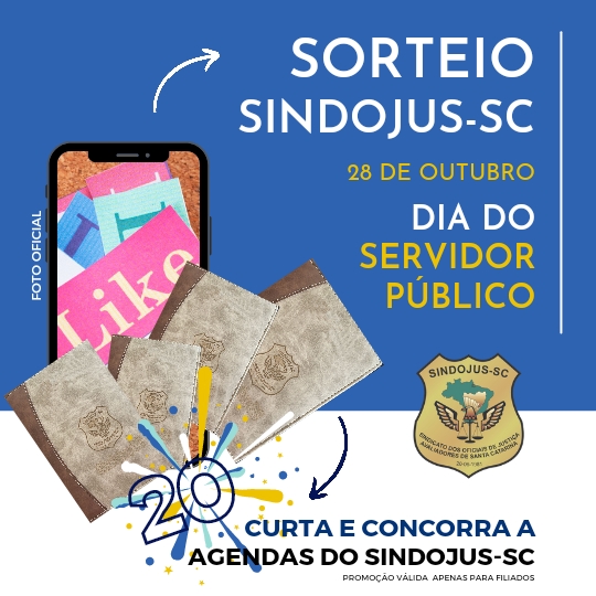 *Parabéns !!!* Em comemoração ao 28 de outubro, Dia do Servidor Público, o SINDOJUS-SC vai SORTEAR entre seus filiados 20 AGENDAS PERSONALIZADAS com a logomarca da entidade.