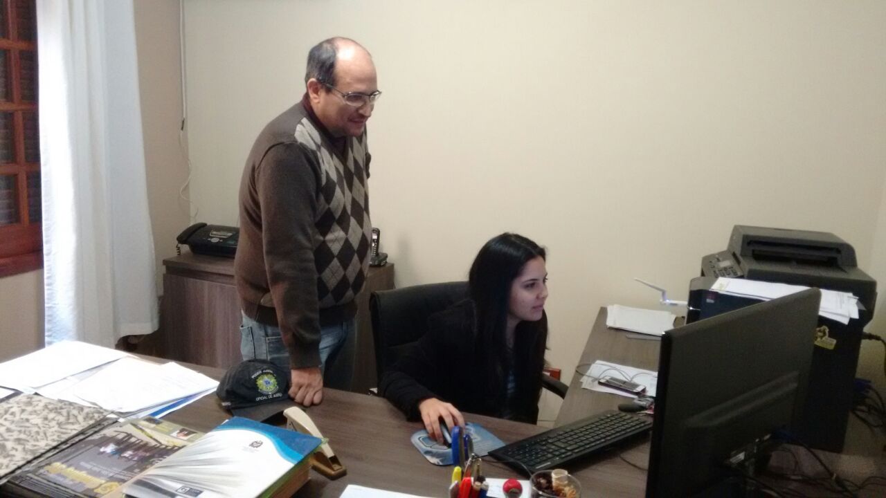 Conforme combinado, Felipe Costa Ribeiro, que acaba de encerrar seu contrato de assessoria em TI com o Sindojus/SC, está na sede da entidade repassando à secretária os dados do gerenciador de e-mails da Diretoria do Sindicato, senhas e como acessar a mala direta dos Oficiais já cadastrados ao mailing sindical - como cadastrar novos e-mails e como enviá-los aos endereços já cadastrados.