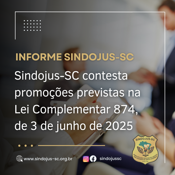 O Sindojus-SC entrou com requerimento no Tribunal de Justiça de Santa Catarina (TJSC) solicitando a promoção de todos os oficiais de justiça avaliadores, conforme previsto no artigo 4º da Lei Complementar 874, de 3 de junho de 2025. A legislação garante que essas promoções em uma referência sejam automáticas, mas, até o momento, não foram efetuadas.