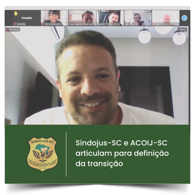 As Diretorias do Sindojus-SC e ACOIJ-SC realizaram na manhã da última quinta-feira , dia 9, uma reunião virtual para dar seguimento às discussões visando a efetivação da transição prevista no art. 5º, da Lei Complementar (LC) n.º 786/21. As entidades buscam garantir o cumprimento da lei, em que os Oficiais de Justiça não são responsáveis pelos deslocamentos para acolhimento de crianças e adolescentes em Comarca diversa. Nesse sentido, a partir das discussões deste último encontro, os Diretores das entidades alinharam a argumentação e irão protocolar documento no processo da transição, conforme solicitado pelo núcleo administrativo da presidência do TJSC.