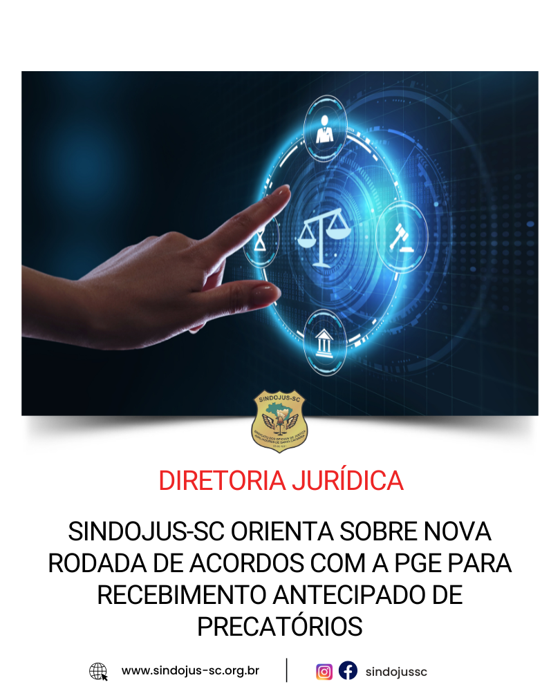 O Sindojus-SC informa que há previsão de uma nova oportunidade para celebração de acordos com a Procuradoria-Geral do Estado de Santa Catarina (PGE) no 2º semestre de 2025 ou no início de 2026.