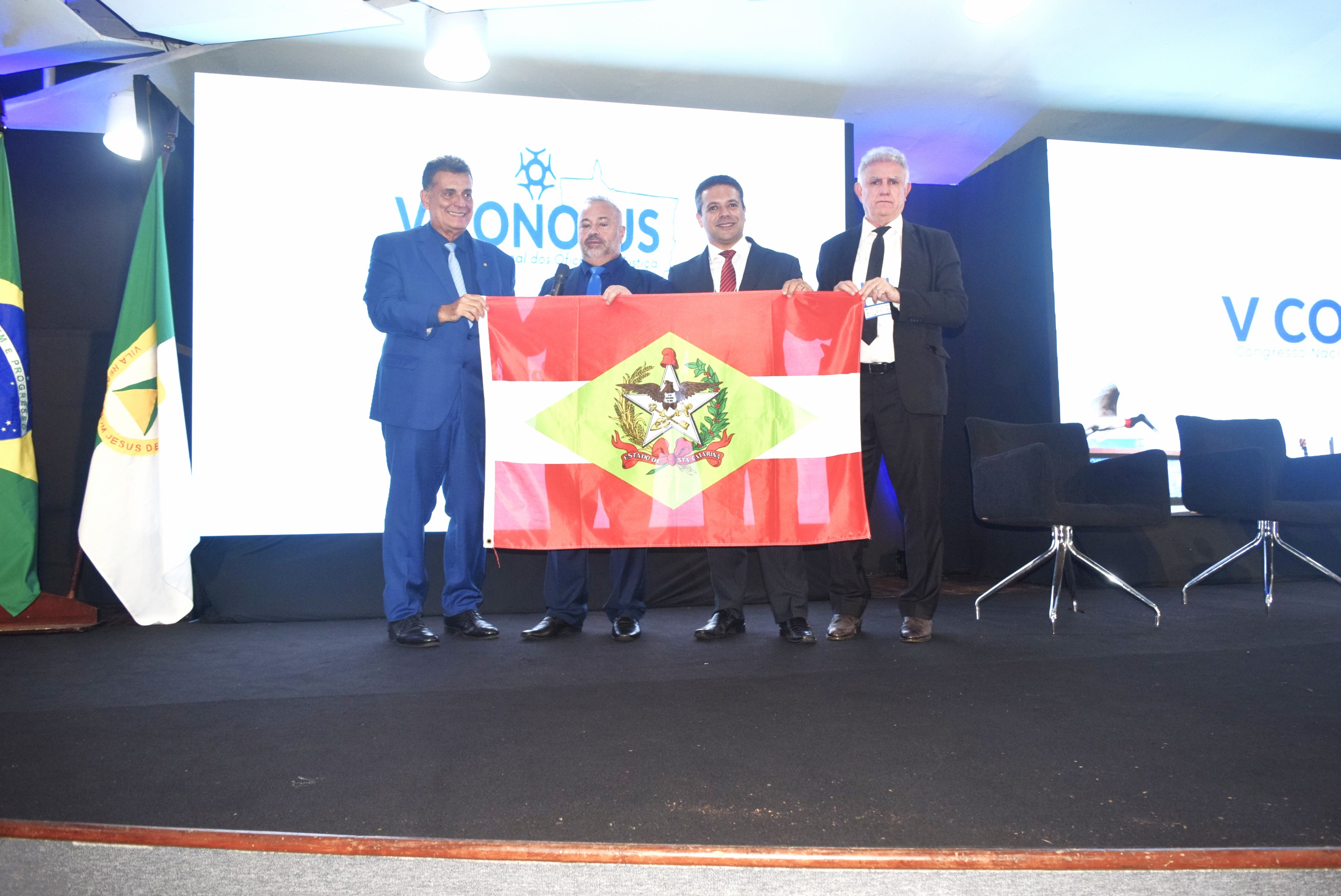 No encerramento do congresso, o presidente do Sindojus-SC, Fernando Amorim Coelho, foi chamado ao palco para apresentar o vídeo oficial sobre Santa Catarina e convidar todos os presentes para o VI CONOJUS, em Florianópolis. Empunhando a bandeira de Santa Catarina, reforçou o compromisso do estado com a categoria e encerrou com um chamado entusiasmado:
