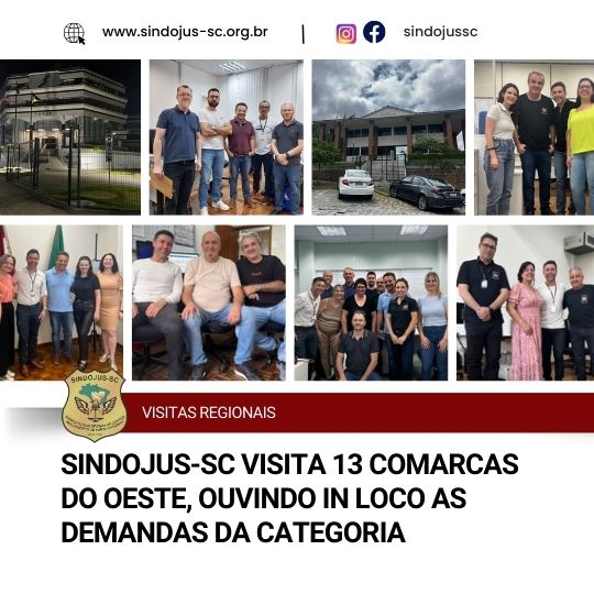 Em uma ação conjunta liderada pelo Diretor de Apoio às Comarcas do Sindojus-SC, Ricardo Prado, em parceria com o presidente da entidade, Fernando Amorim Coelho, o Sindicato visitou os oficialatos de mais de 13 Comarcas do Oeste catarinense. Durante as reuniões presenciais, os Diretores puderam dialogar diretamente com os oficiais de justiça, discutindo estratégias adotadas pela entidade e questões mais sensíveis a cada Comarca.