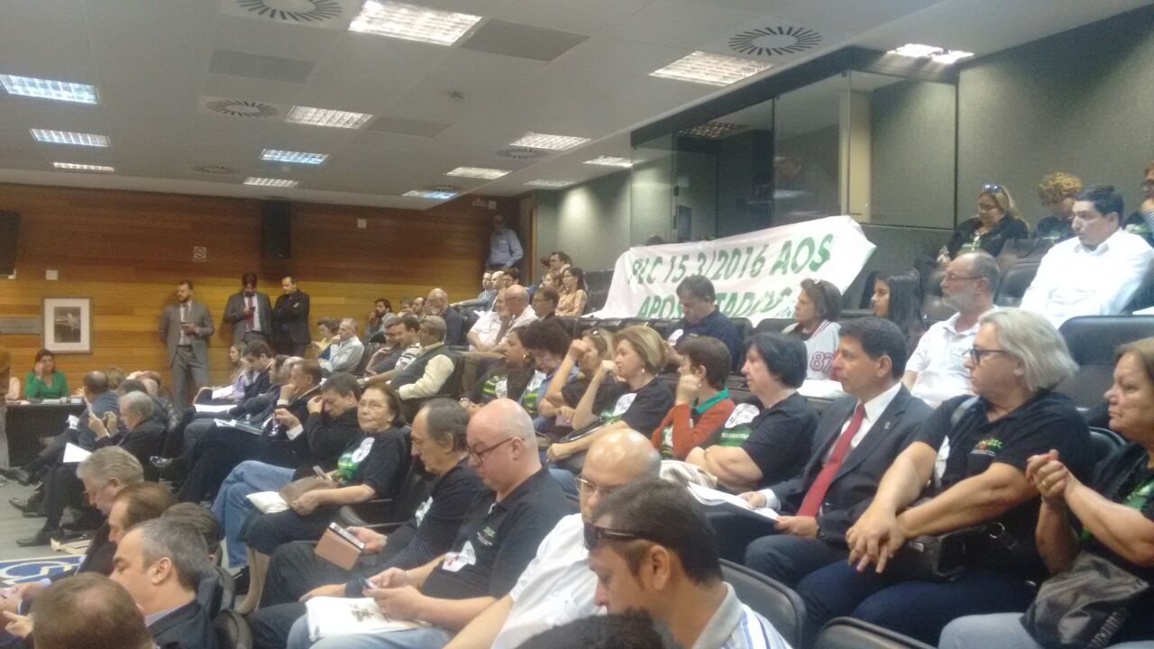O presidente César Rubens Deschamps, e o vice-presidente, Fernando Amorim Coelho, estão presentes na mobilização realizada hoje durante debate na Alesc sobre o PLC 15.3/2016 - que visa o pagamento do Auxílio Médico-Social aos aposentados do Judiciário; sobre o PLC 0245.9 - que se refere aos recursos do Sidejud; e sobre o PLC 014.2/2016 - que diz respeito ao fundo de reaparelhamento.