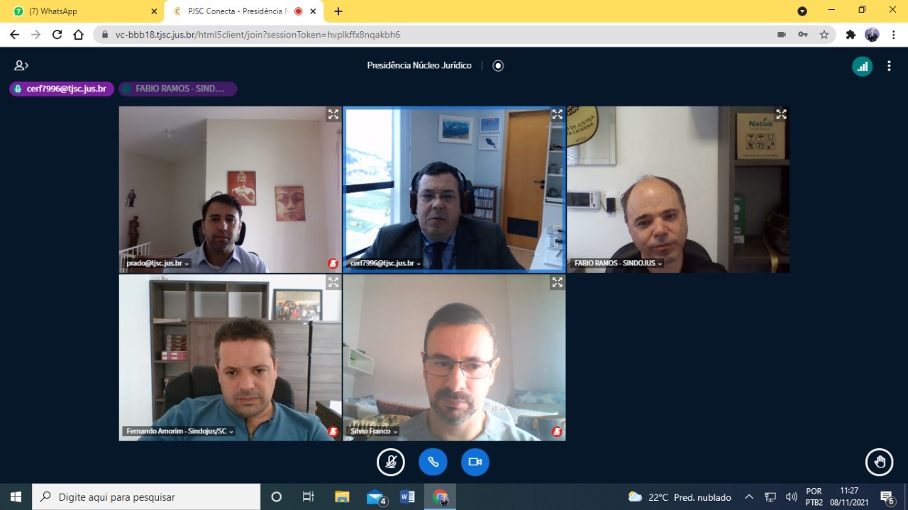 O término dos prazos para cumprimento dos mandados represados durante o período de pandemia foi o tema da reunião conjunta realizada na manhã de ontem (08/11), de forma virtual, entre a Diretoria do Sindojus-SC, a Corregedoria Geral da Justiça e a Presidência do Tribunal de Justiça de Santa Catarina (TJSC).