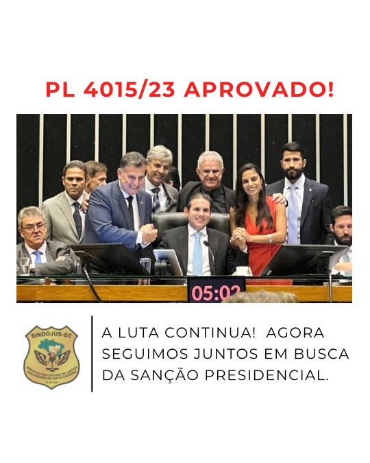 Oficiais de Justiça de todo Brasil alcançaram uma conquista histórica com a aprovação na tarde de ontem (08/04), no Plenário Ulysses Guimarães da Câmara dos Deputados, do PL 4015/2023 – que reconhece o risco da atividade do Oficial de Justiça. Trata-se de um justo e merecido reconhecimento à categoria!